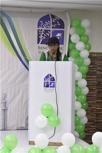 Benchmark School System has always been the leading institution in conducting patriotic activities in high-spirit and nationalistic events amongst the youth of Pakistan. Every year, students, faculty and parent community of Benchmark School System celebrate Pakistan Independence Day on 14th August with great enthusiasm, dedication and fervor. This year, a grand ‘Azaadi Gala’ was organized to celebrate 76 glorious years of Independence. The grand ‘Azaadi Gala’ featured many exciting events like National Flag Hoisting Ceremony, Singing National Songs, Speech Competition, Bake Sale and much more! Students came together in solidarity to pay special tributes to the National Heroes of Pakistan and prayed for the prosperity of their motherland.