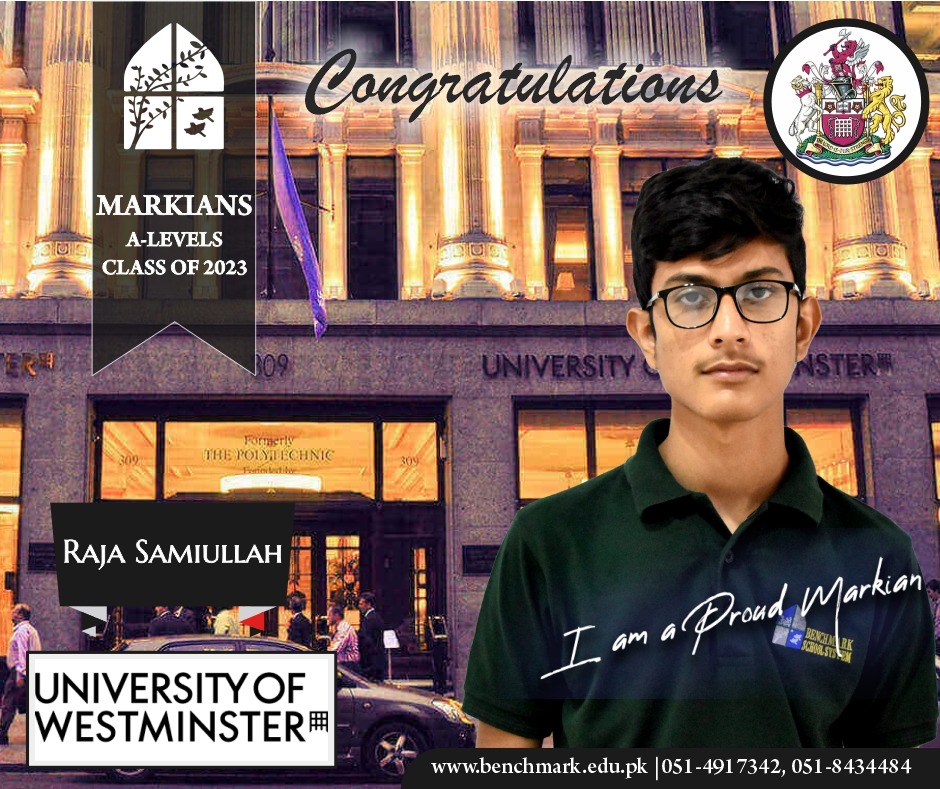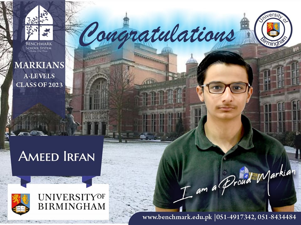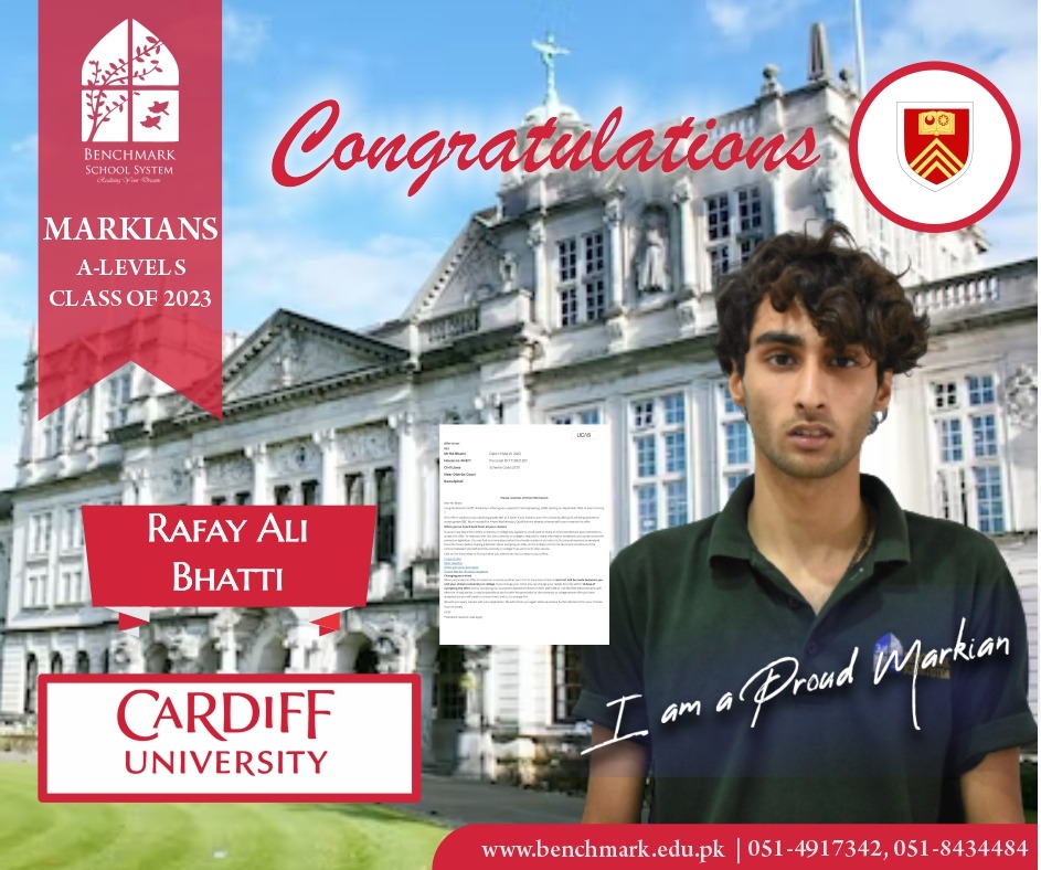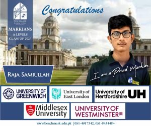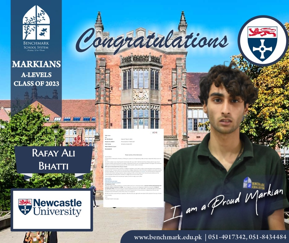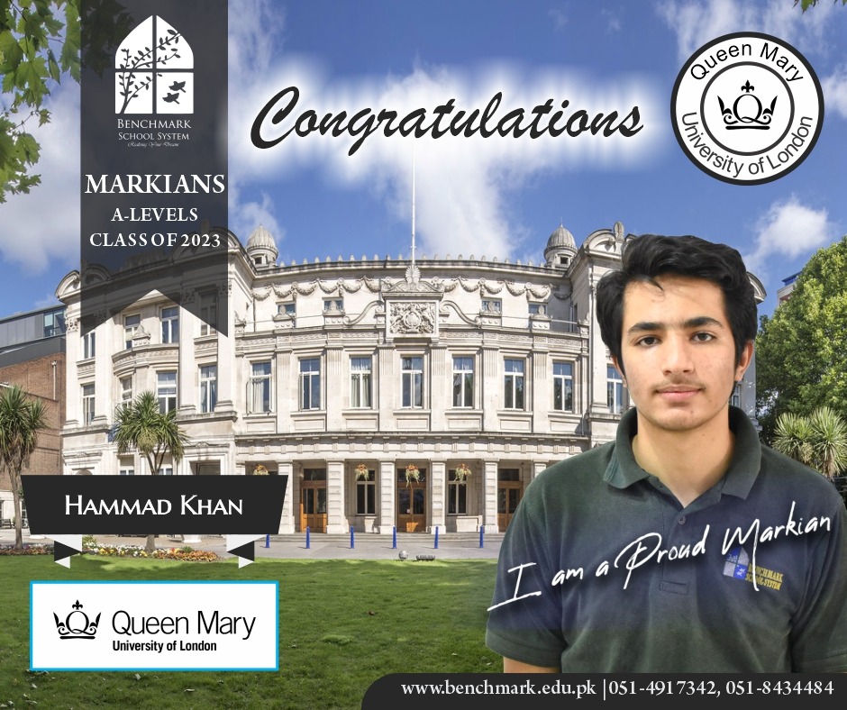 Benchmark School System takes great pride in its students who have secured placements at prestigious UK universities for the year 2023. From Imperial College London and University College London (UCL) to King’s College and the University of Southampton, our students’ accomplishments exemplify their dedication, hard work, and academic excellence. We commend them for their unwavering commitment to their studies and for representing our school with such distinction. These university acceptances are a testament to the exceptional education and nurturing environment that Benchmark School System provides, empowering students to reach new heights and pursue their dreams on an international stage.