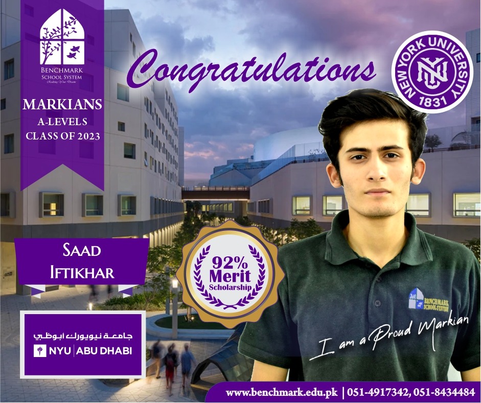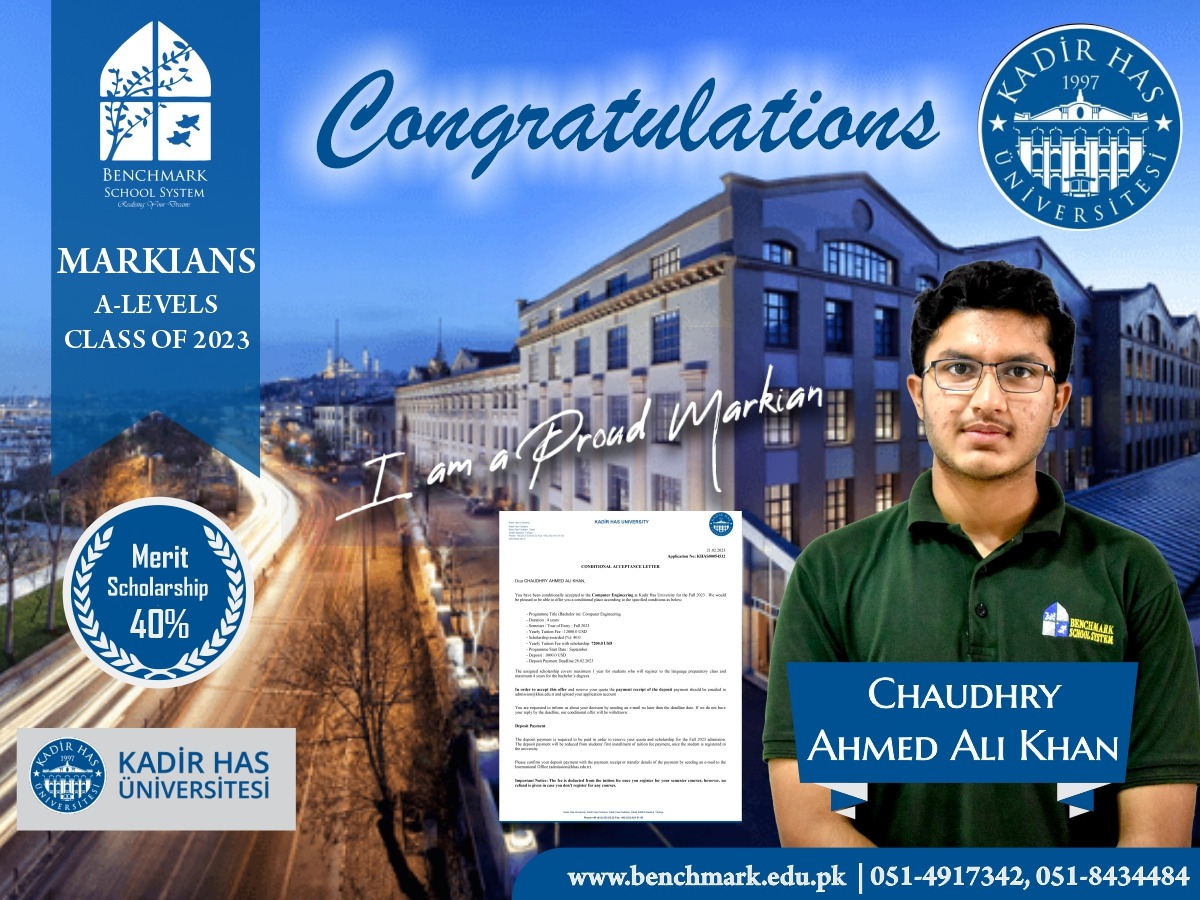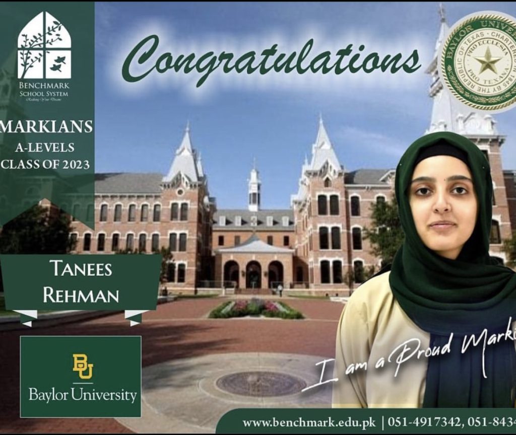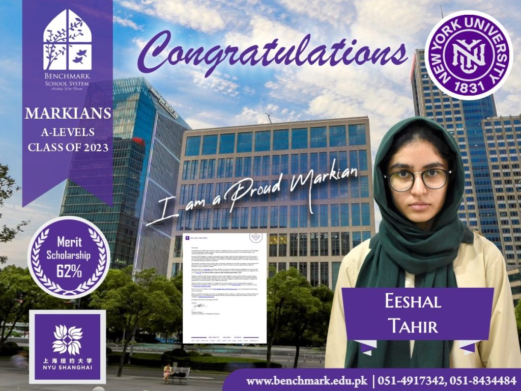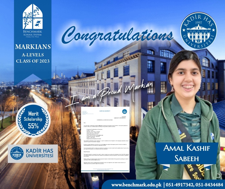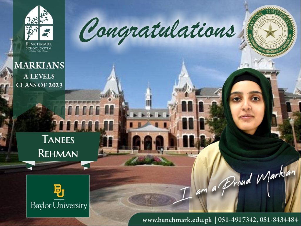 Benchmark School System takes great pride in its students who have secured placements at the one of the most prestigious institutions in Pakistan, Lahore University of Management Sciences (LUMS), for the year 2023. LUMS represents a pinnacle of academic excellence and innovation in higher education. Our students’ acceptance into LUMS is a testament to their unwavering commitment to their studies, as well as the dedication and support provided by our esteemed faculty and staff.