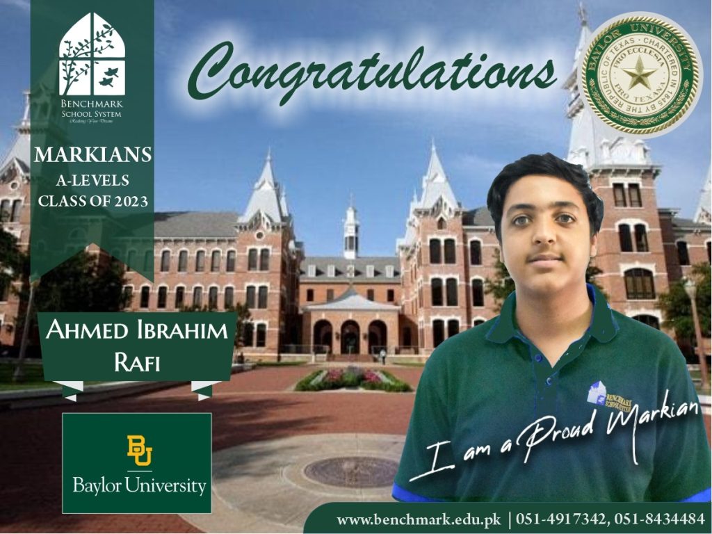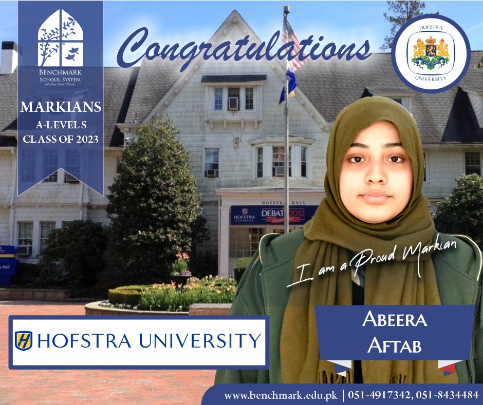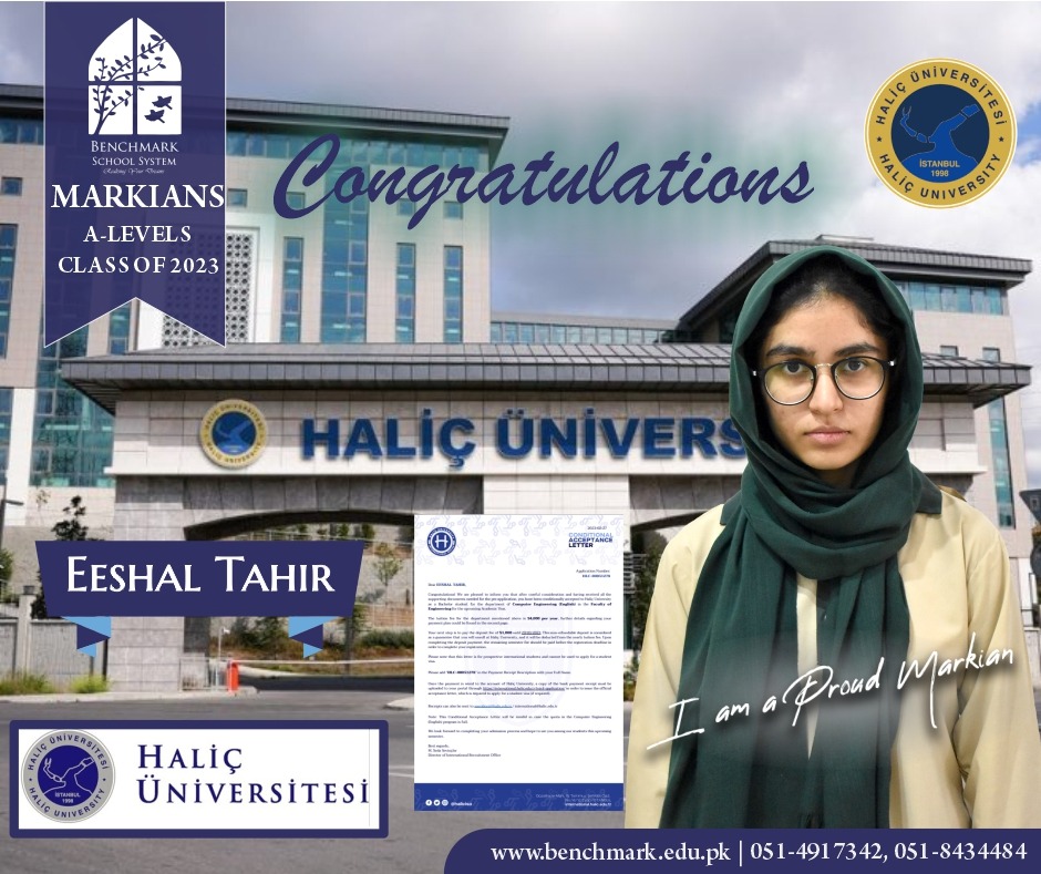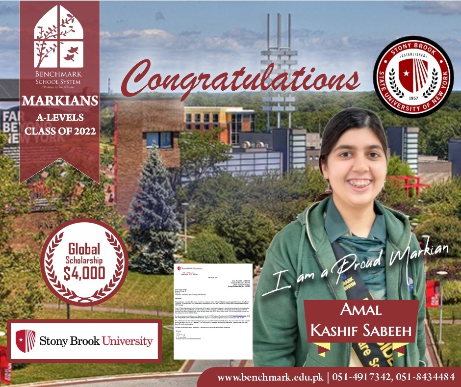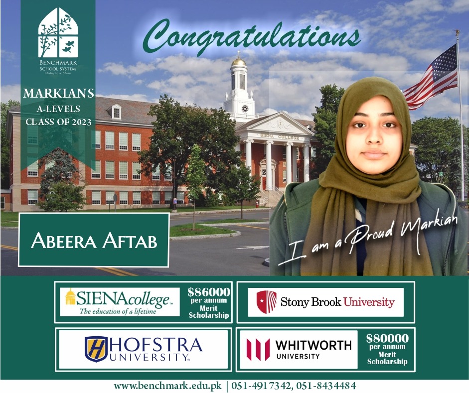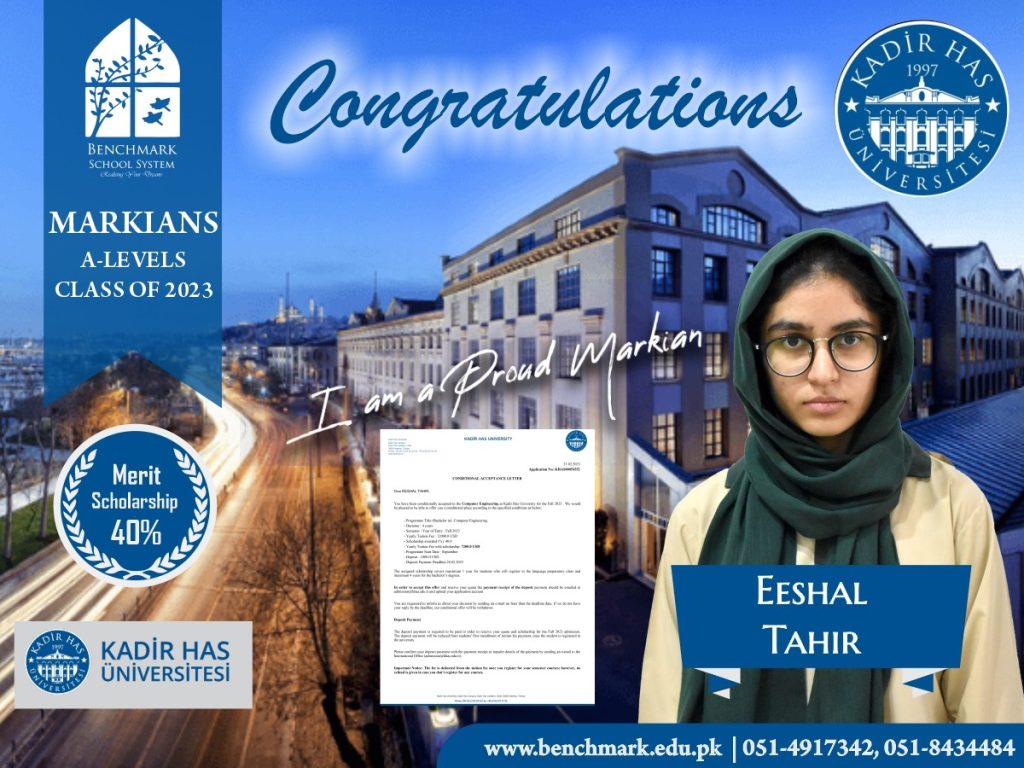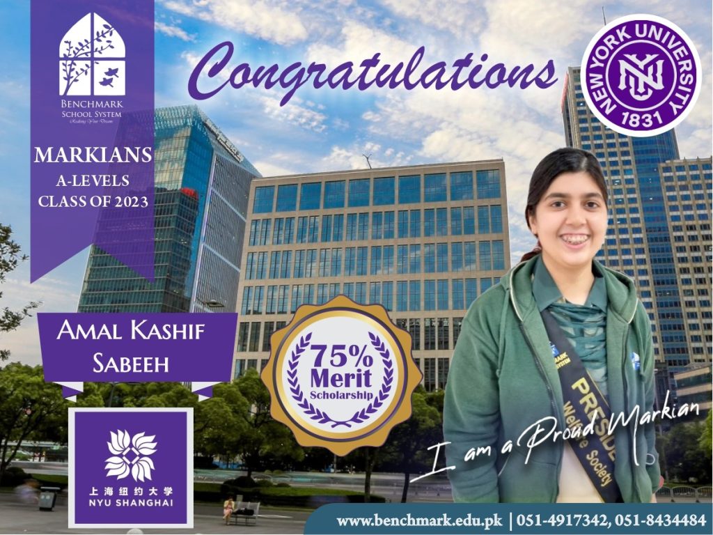 Benchmark School System takes great pride in its students who have secured placements at the one of the most prestigious institutions in Pakistan, Lahore University of Management Sciences (LUMS), for the year 2023. LUMS represents a pinnacle of academic excellence and innovation in higher education. Our students’ acceptance into LUMS is a testament to their unwavering commitment to their studies, as well as the dedication and support provided by our esteemed faculty and staff.