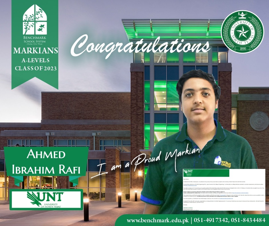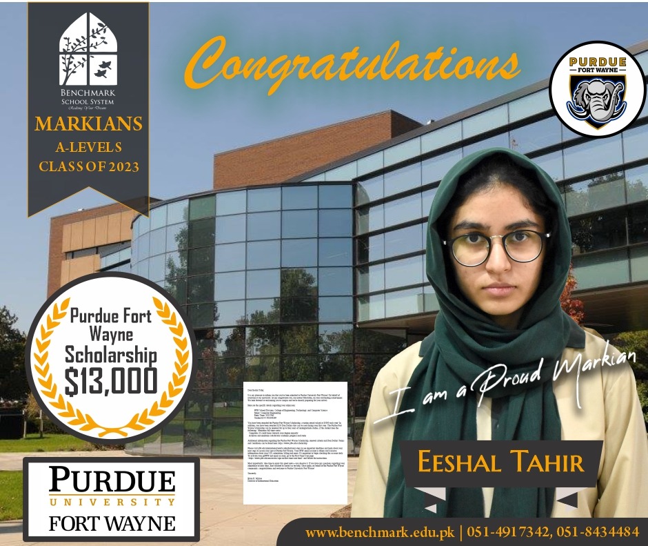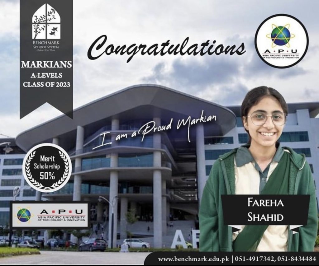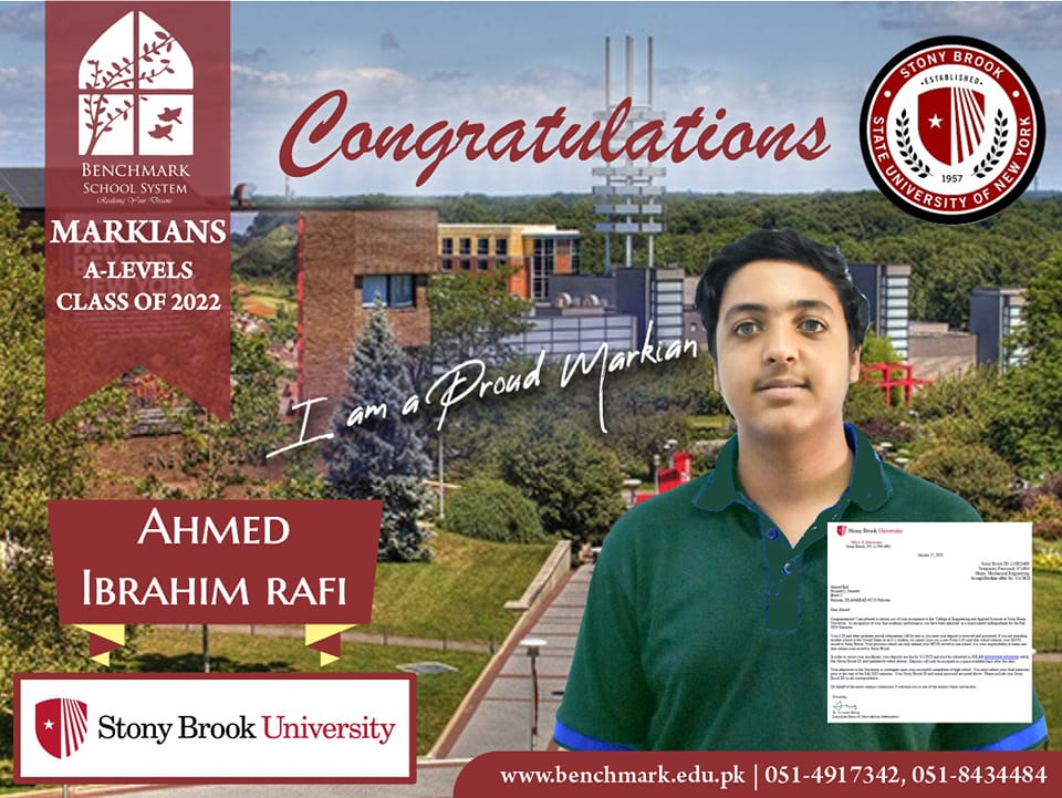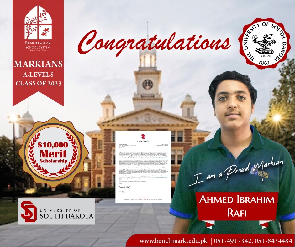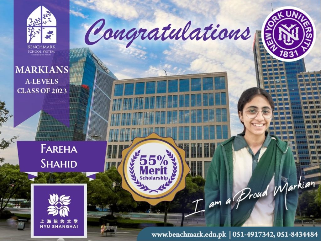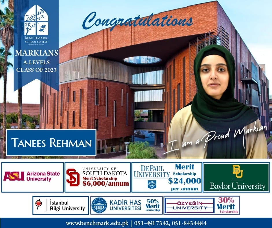 Benchmark School System takes great pride in its students who have secured placements at the one of the most prestigious institutions in Pakistan, Lahore University of Management Sciences (LUMS), for the year 2023. LUMS represents a pinnacle of academic excellence and innovation in higher education. Our students’ acceptance into LUMS is a testament to their unwavering commitment to their studies, as well as the dedication and support provided by our esteemed faculty and staff.