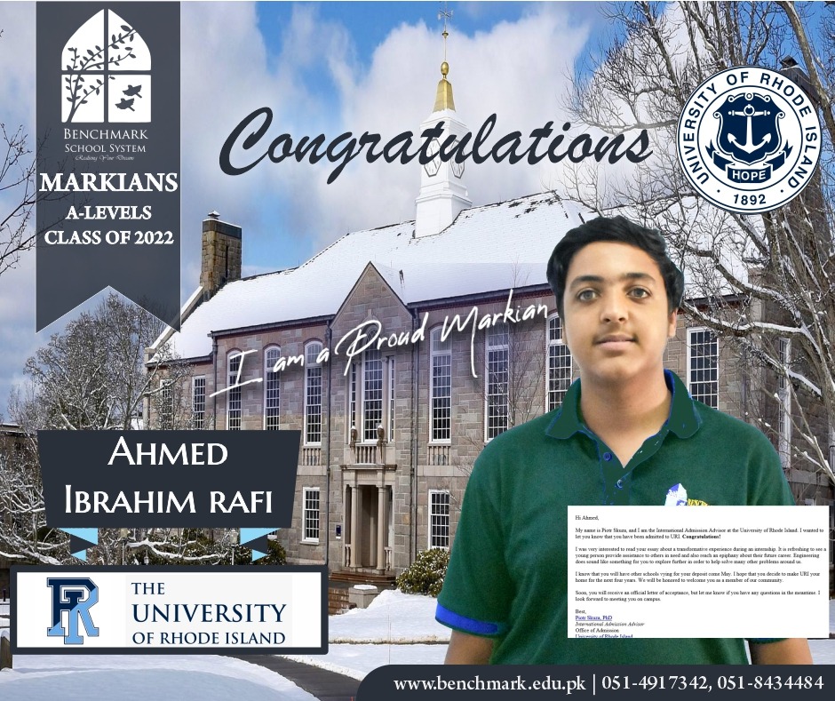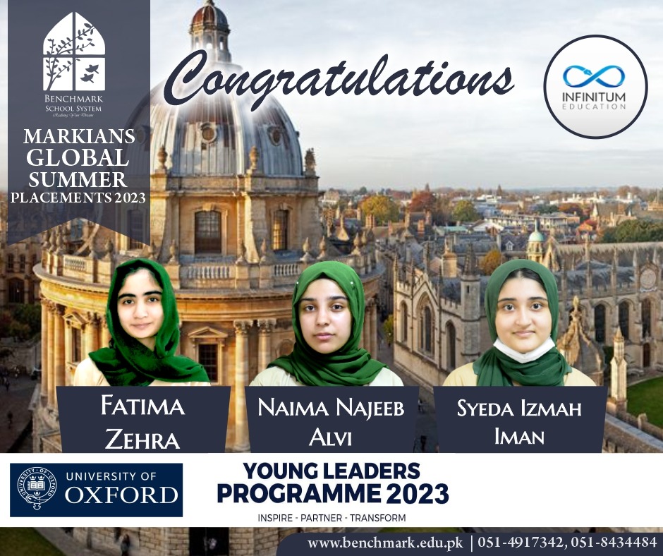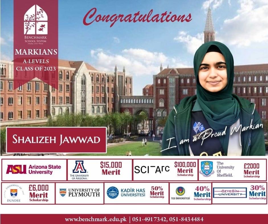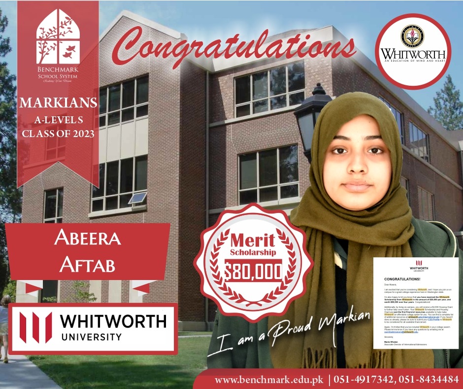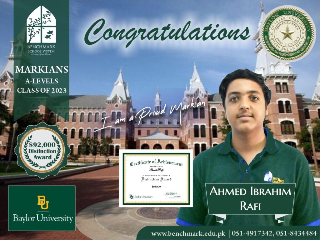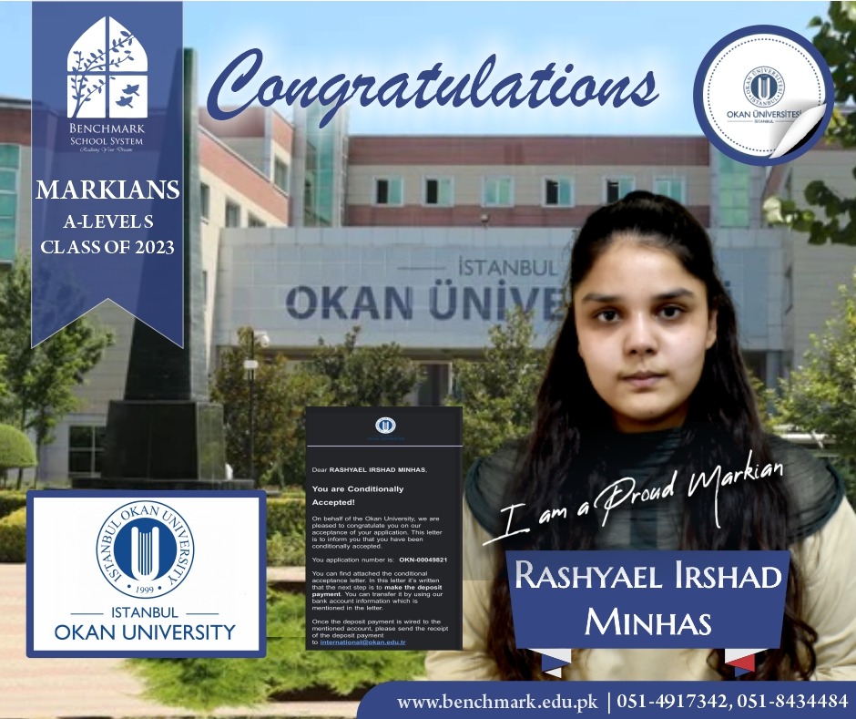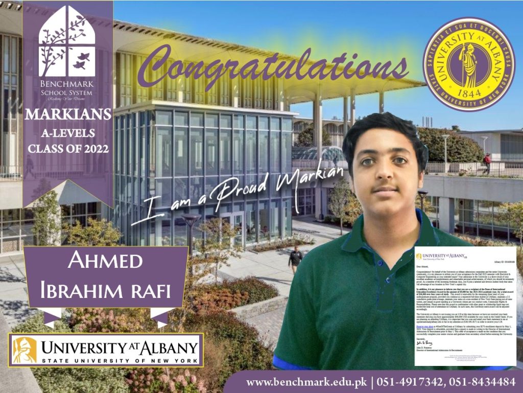 Benchmark School System takes great pride in its students who have secured placements at the one of the most prestigious institutions in Pakistan, Lahore University of Management Sciences (LUMS), for the year 2023. LUMS represents a pinnacle of academic excellence and innovation in higher education. Our students’ acceptance into LUMS is a testament to their unwavering commitment to their studies, as well as the dedication and support provided by our esteemed faculty and staff.